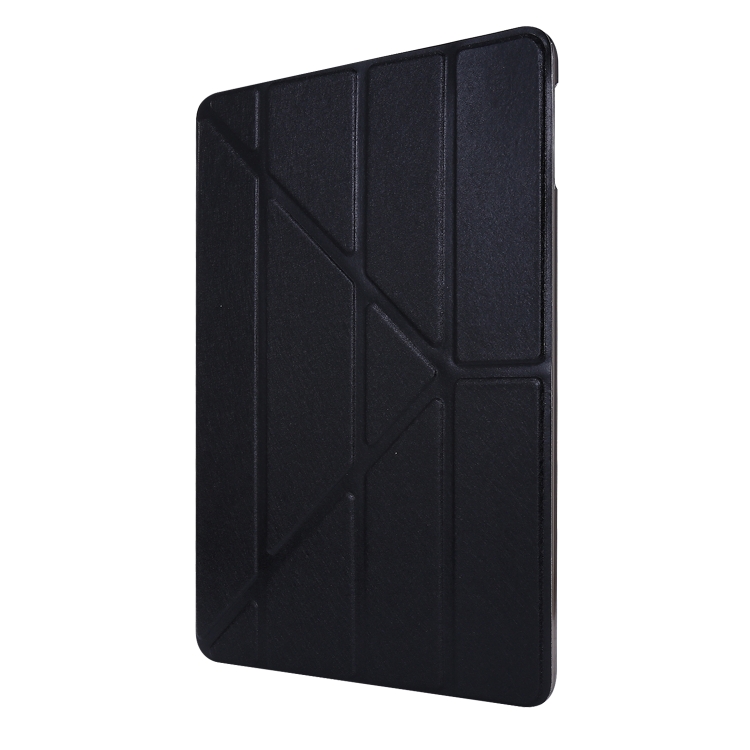 Funda de Cuero Textura de Seda para iPad Air 2022/2020 10.9 con Soporte Tres Plegables (Negro)