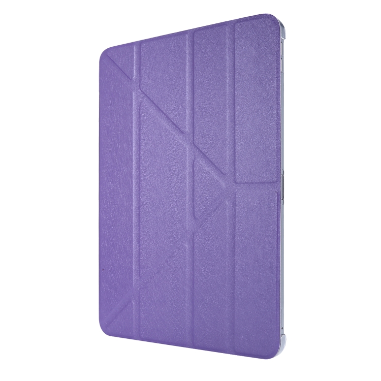 Funda de Cuero Textura de Seda para iPad Air 2022/2020 10.9 con Soporte Tres Plegables (Púrpura)