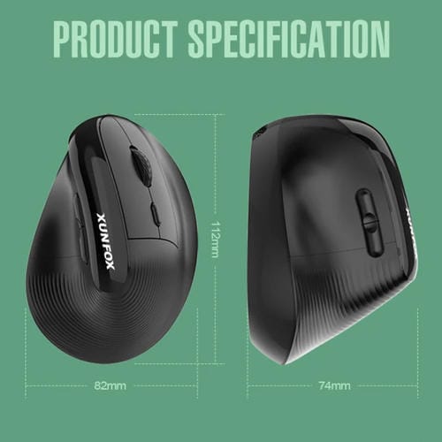- 1x Ratón Vertical Inalámbrico Xunsvfox H5 Modo Dual ReCargable para Oficina de Negocios (Negro)