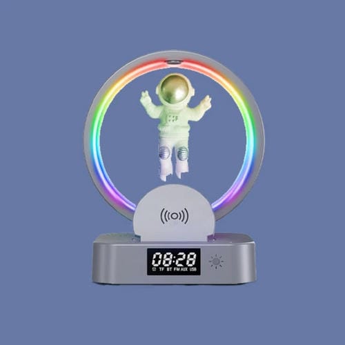 Altavoz Bluetooth Y-558 Astronauta Levitación Magnética TWS Luz RGB Carga Inalámbrica (Plateada)