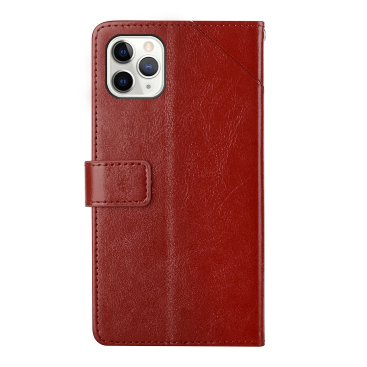 Caja del Teléfono Y Costura para iPhone 13 Pro Tapa Horizontal con Soporte Tragamonedas Cartera y Marco de Foto (Brown)