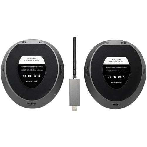 - Tecnología Inalámbrica 2.4G, sensibilidad -22dBFS, relación Señal/ruido 60dB, rango de frecuencia 20Hz-15kHz, cancelación de eco de 256 ms, frecuencia de muestreo 16 kHz / 48 kHz, interfaz de salida externa con Conector de Auriculares de 3,5 mm, Puerto de Carga Mini USB, tiempo de Carga aproximado 4 horas, autonomía de uso continua hasta 12 horas, tiempo en espera de 3 meses, dimensiones 178x162x47 mm, peso 940 g