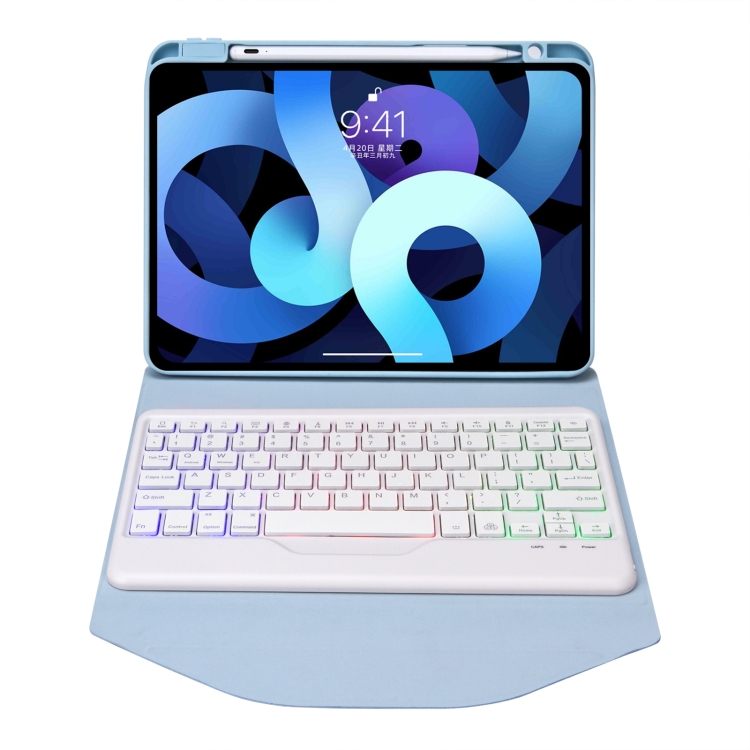 Funda de cuero para iPad Air 10.9 Z098Bs con teclado Bluetooth retroiluminado y ranura para bolígrafo (Azul Cielo)