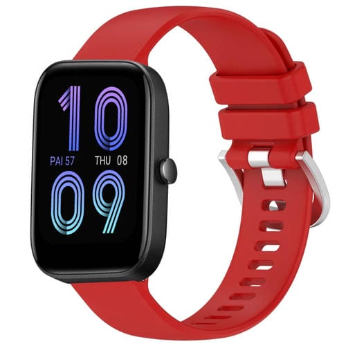 Correa de Silicona para Amazfit Bip 3 Pro y Bip 3 con Hebilla Plateada 20mm (Rojo)
