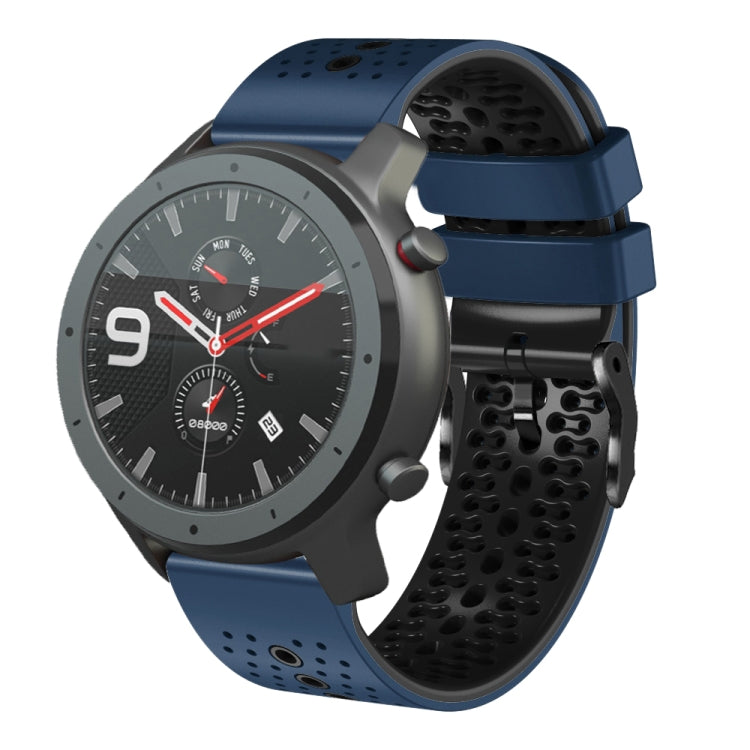 Correa de Reloj para Amazfit GTR 3 22mm Silicona Perforada Dos Colores (Azul Medianoche + Negro)