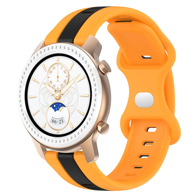 Correa de Reloj para Amazfit Pop 20mm Hebilla de Mariposa Silicona Dos Colores (Negro + Amarillo)