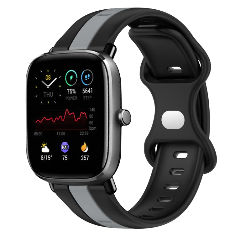 Correa de Reloj para Amazfit Pop 20mm Hebilla de Mariposa Silicona Dos Colores (Negro + Gris)