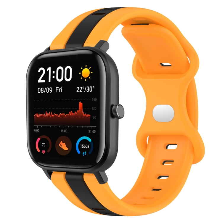Correa de Reloj 20mm para Amazfit GTS Hebilla de Mariposa Silicona Dos Colores (Negro + Amarillo)