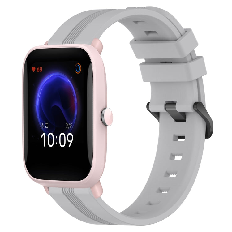 Banda de Reloj de Silicona para Amazfit Pop Pro 20mm con Rayas Cóncavas (Gris)
