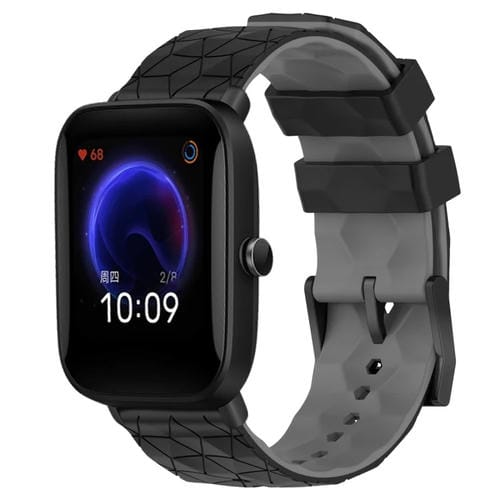 Banda de Reloj para Amazfit Pop 20mm Textura de Fútbol Silicona Dos Colores (Negro + Gris)
