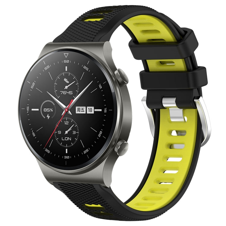 Correa de Silicona para Huawei GT2 46mm 22mm Sports con Hebilla de Acero (Gris + Amarillo)