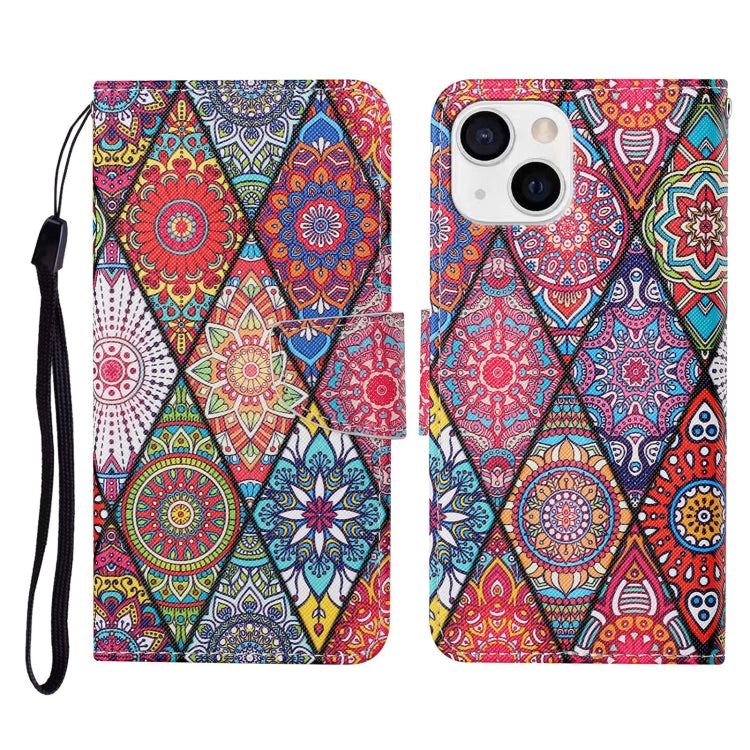 Funda de Cuero para iPhone 13 Mini Patrón Dibujo Coloreado con Tapa Horizontal (Étnico Tribal)