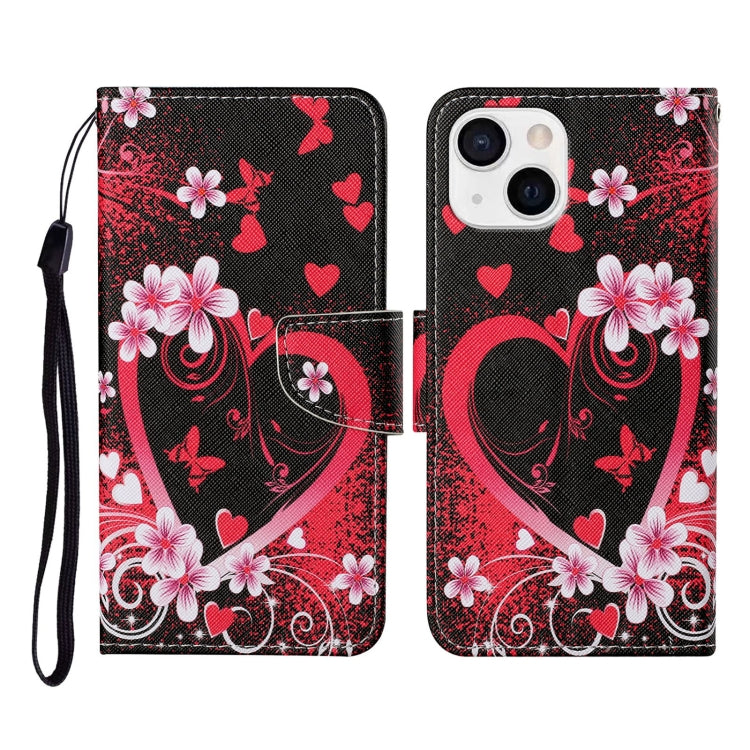 Funda de Cuero para iPhone 13 Mini con Tapa Horizontal y Patrón de Dibujo Coloreado (Gesto de Amor)