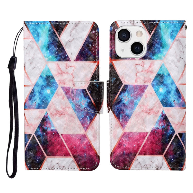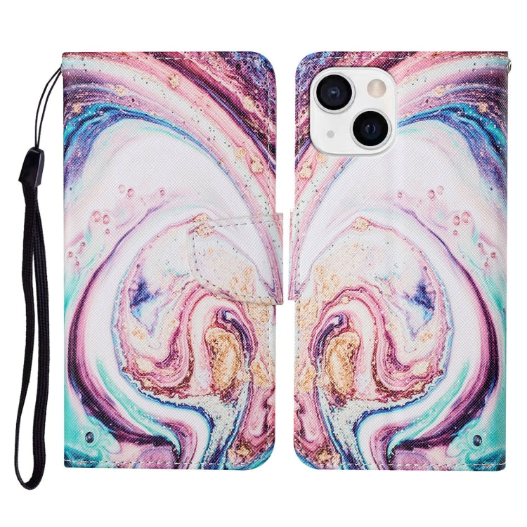 Funda de Cuero para iPhone 13 Mini con Patrón de Dibujo a Color (Mármol Púrpura)
