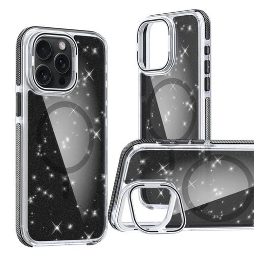 Funda para Teléfono iPhone 13 Pro Magsafe con Soporte para Lentes y Purpurina (Negro)