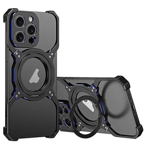 Funda de Teléfono Metal iPhone 13 Pro Soporte Magsafe sin Bordes Brazo Mecánico (Negro Azul)