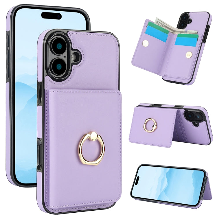 Funda para Teléfono con Anillo para Tarjeta Antirrobo Rfid iPhone 16 (Morado)