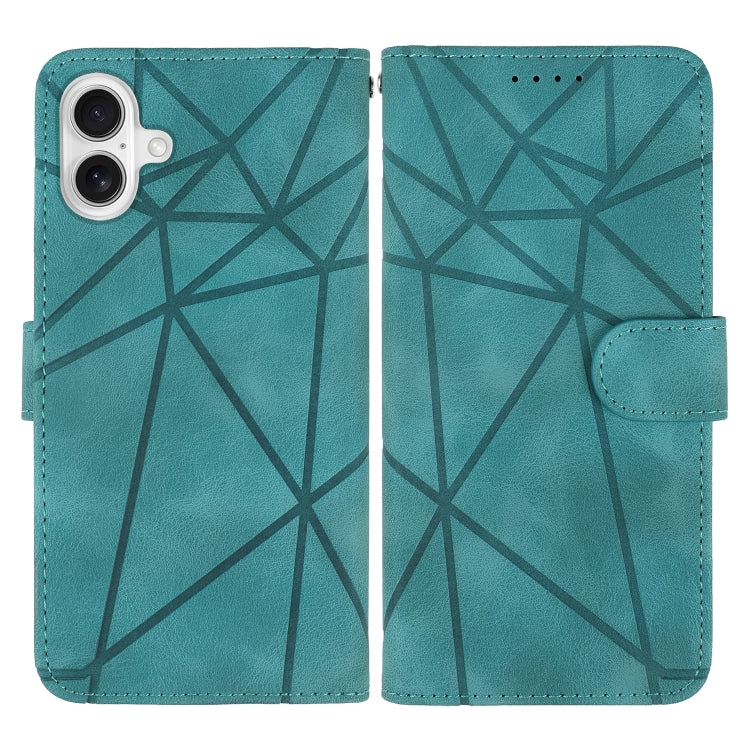 Funda de piel para iPhone 16 con líneas geométricas y tacto agradable (Azul)