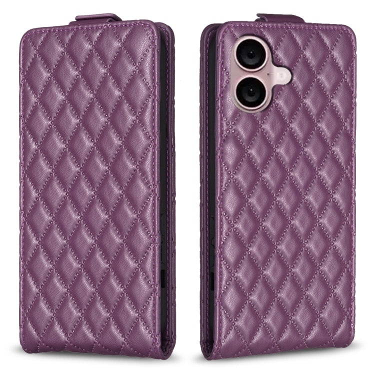 Funda de Teléfono iPhone 16 Cuero con Tapa Vertical Diamond Lattice (Púrpura Oscuro)