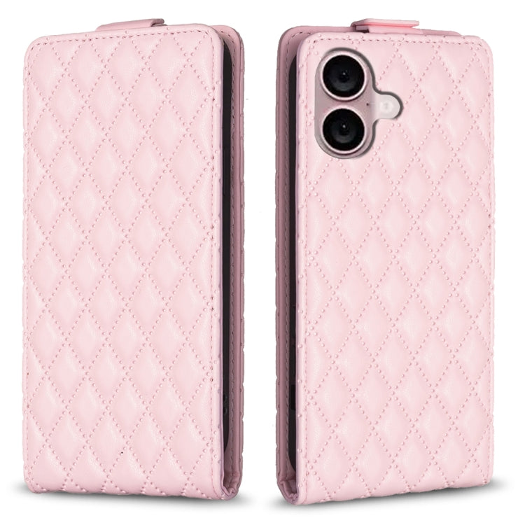 Funda de Teléfono para iPhone 16 Cuero con Tapa Vertical Diamond Lattice (Rosa)