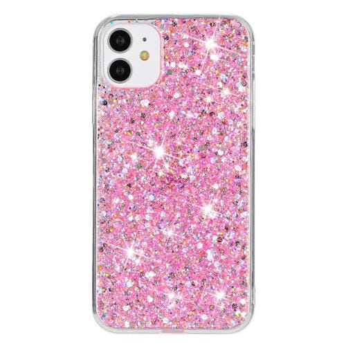 Funda para iPhone 11 TPU con Polvo de Brillo y Marco Transparente (Rosa)