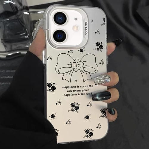 Funda híbrida para iPhone 11 TPU para PC con pintura plateada (Lazo Floral Blanco)