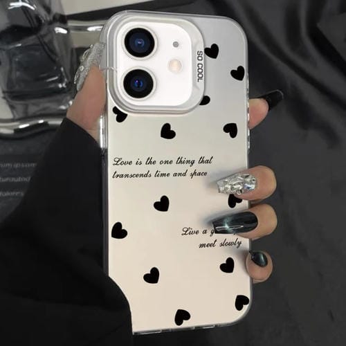 Caja híbrida para iPhone 11 TPU para PC con Pintura Plateada (Love Hearts Black)