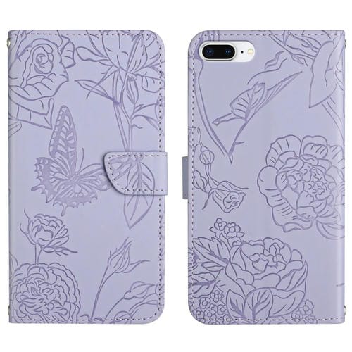 Funda para teléfono Cuero iPhone 8 Plus 7 Plus Relieve Peonía (Púrpura)