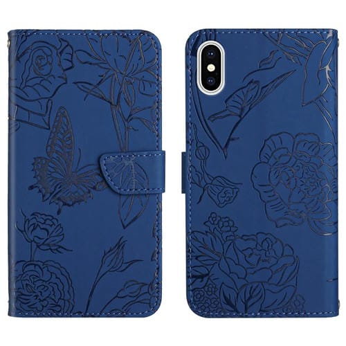Funda para Teléfono iPhone Xs Max Skin Feel Butterfly Peony Cuero En Relieve (Azul)
