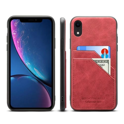 Funda para Teléfono iPhone Xr Ranuras para Tarjetas Cobertura Completa PU + TPU (Rojo)