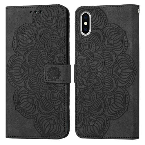 Estuche para Teléfono iPhone X Xs Cuero Tapa En Relieve Mandala (Negro)