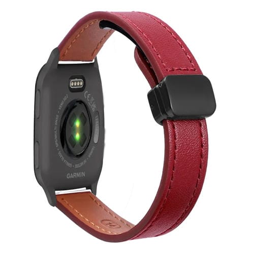 Correa de Reloj Cuero Microfibra con Hebilla Magnética 22mm para Garmin Venu 2 (Rojo Vino)