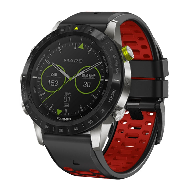 Correa de Reloj de Silicona para Garmin Fenix 7X 26mm con Orificio de Tres Filas (Negro Rojo)