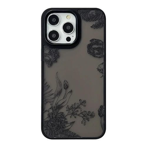 Funda para Teléfono iPhone 13 Pro Max Skin Feel Matte TPU + PC a Prueba de Golpes (Flor Negra)