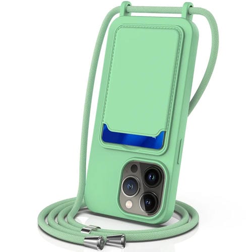 Funda para Teléfono iPhone 13 Pro Max Bolsa para Tarjeta Silicona Líquida con Cordón (Negro)