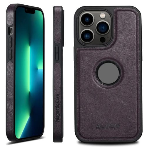 Funda Trasera Suteni G1 para iPhone 13 Pro Max Magsafe Cuero (Púrpura)
