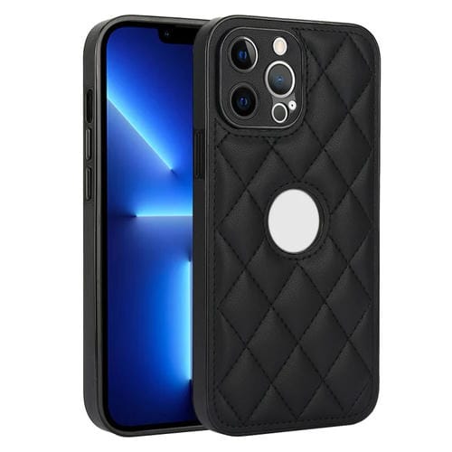 Funda para Teléfono iPhone 13 Pro Max Contraportada Cuero Rómbico (Negro)