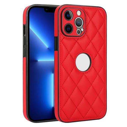 Funda para Teléfono iPhone 13 Pro Max con Contraportada de Cuero Rómbico (Rojo)