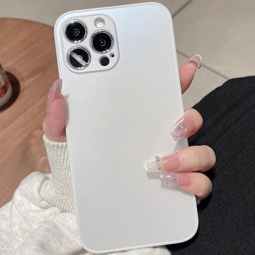 Funda de Teléfono iPhone 13 Pro Max Vidrio Templado Color Sólido (Blanco)
