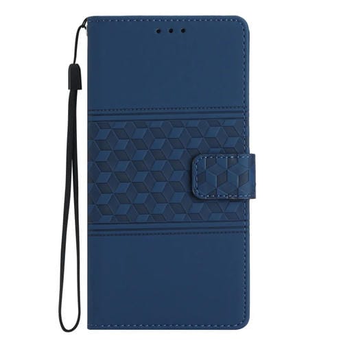 Estuche para teléfono iPhone 13 Pro Max cuero con tacto de piel en relieve con cordón (Azul Oscuro)