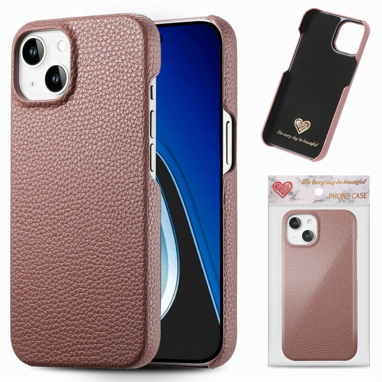 Funda para Teléfono iPhone 15 Plus Parte Trasera Cuero Litchi Oil Edge (Marrón)