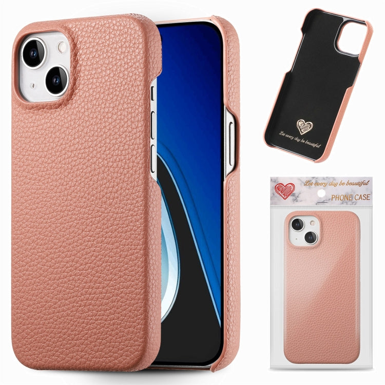 Funda para Teléfono iPhone 15 Plus con Parte Trasera de Cuero Litchi Oil Edge (Rosa)