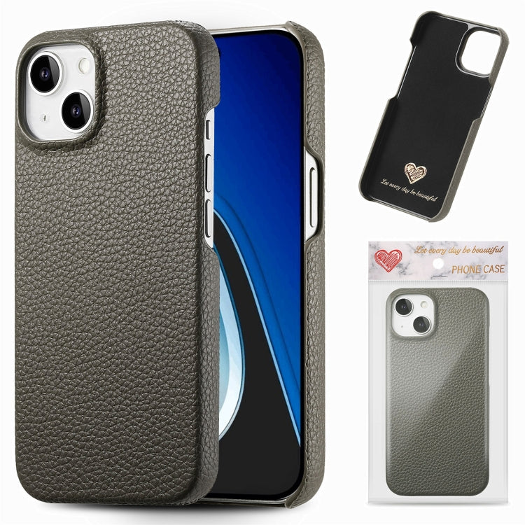 Funda para teléfono iPhone 15 Plus con parte Trasera de cuero Litchi Oil Edge (Caqui)