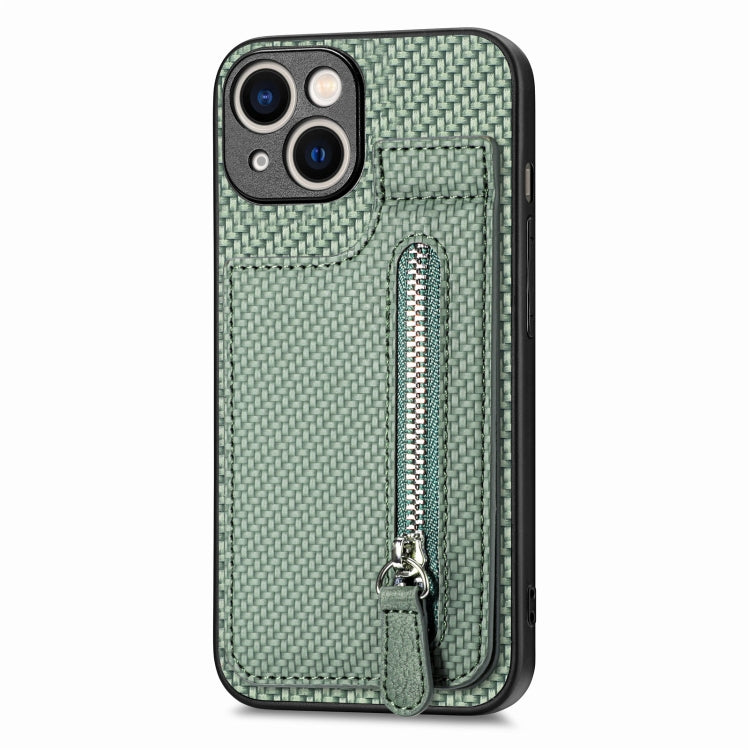 Funda para Teléfono iPhone 15 Plus con Cremallera y Tapa Vertical de Fibra de Carbono (Verde)