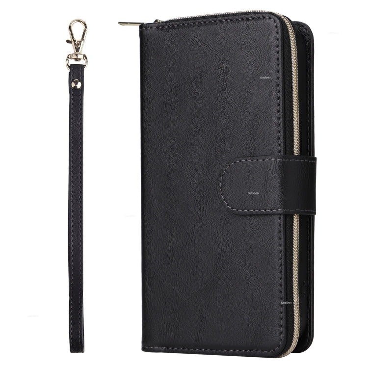 Funda para iPhone 15 Pro Bolso Tipo Billetera con Cremallera 9 Ranuras para Tarjetas (Negro)