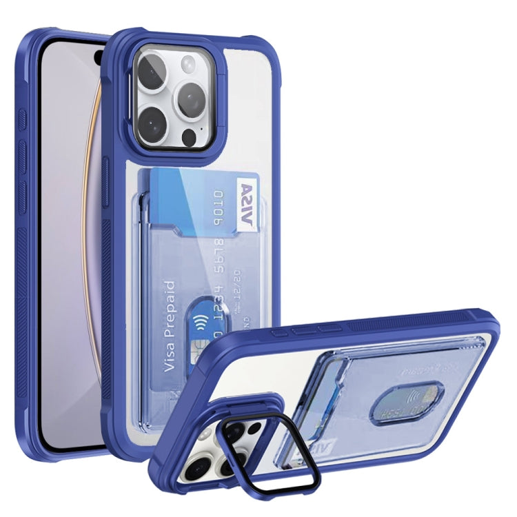 Funda híbrida Acrílico TPU con tarjetero para iPhone 16 Pro Max (Azul)