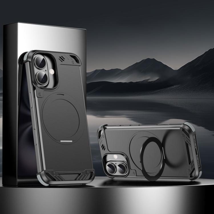 Funda para iPhone 16 con Soporte 360 Grados sin Marco en Forma de Z Metal Magsafe (Gris Espacial)