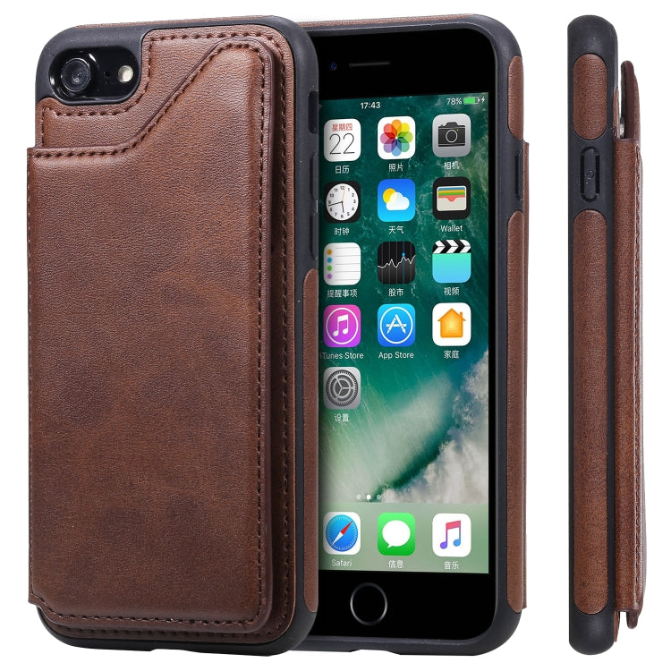 Funda Protectora iPhone 7/8 Textura Pantorrilla Soporte Ranuras Tarjetas Marco (Café)
