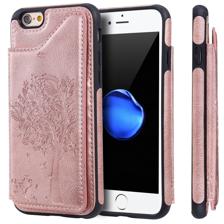Funda Protectora iPhone 7/8 Textura Pantorrilla Soporte Ranuras Tarjetas Marco (Oro Rosa)