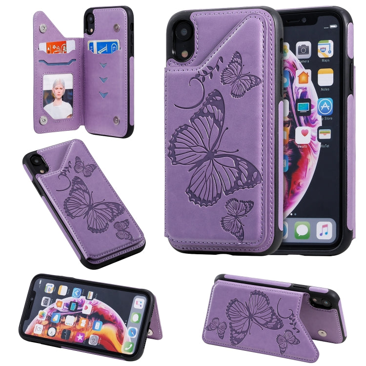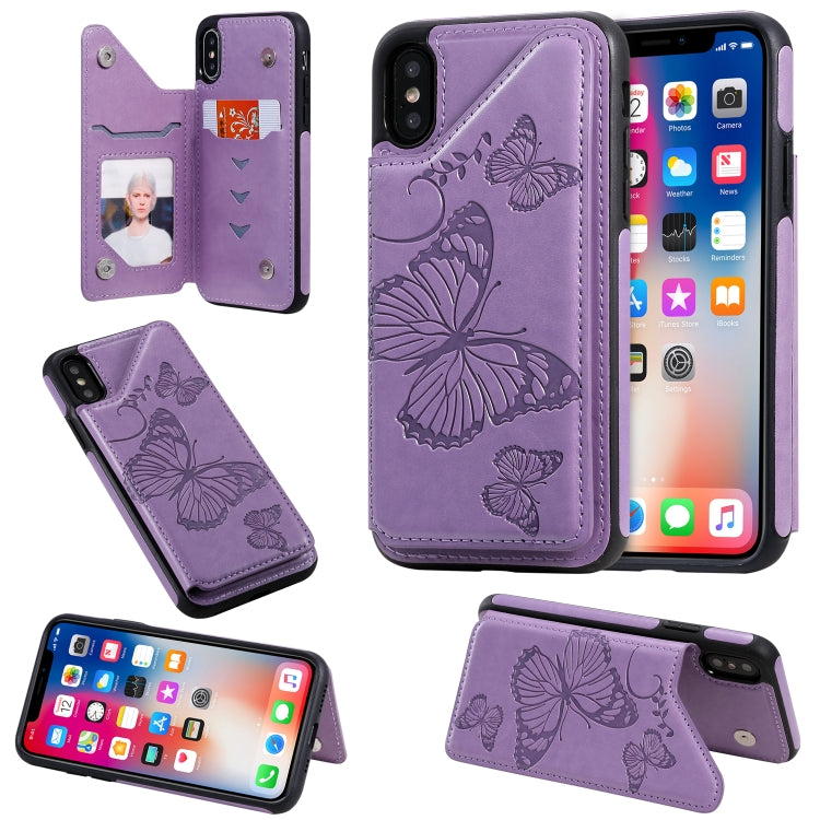 Funda Protectora para iPhone 7 y 8 Patrón Mariposas con Soporte y Ranuras para Tarjetas (Morado)